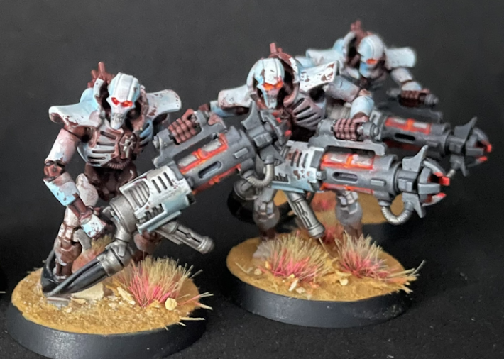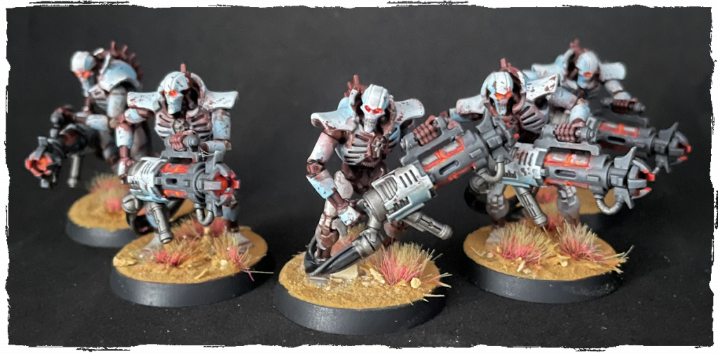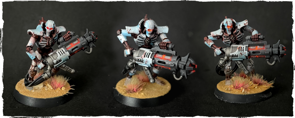 I love these models. They’re super cheesey in a way but no denying they have a menacing aura and I enjoyed posing them. I can’t decide if my favourite is the one at rest hefting his giant cannon, one of the ones advancing and mercilessly gunning down the enemy mercillessly , or the one mid-recoil.