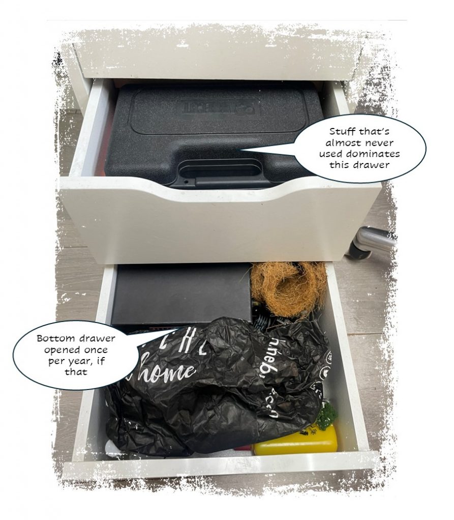 Top drawers are similarly well designed. I’ll do a good cleanout of my paints – who doesn’t like auditing their paints, picking out the crust from the lids and remixing any that have dried out with some acrylic medium?